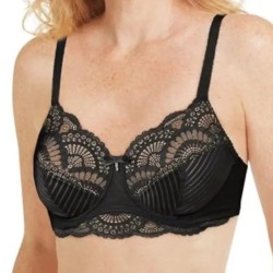Le soutien-gorge Karolina avec armatures fera tourner les têtes avec son superbe motif éventail en dentelles associée à une matière rayée légèrement brillante.